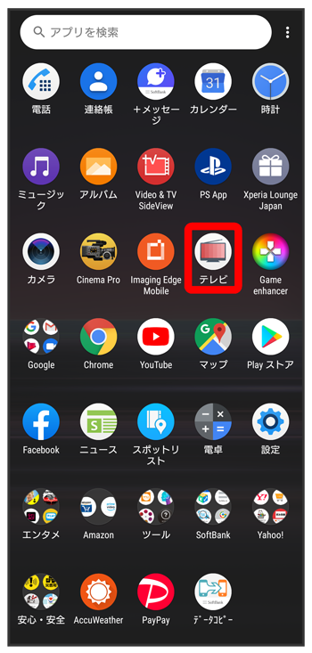 ホーム画面で画面を上にドラッグ