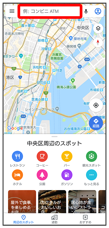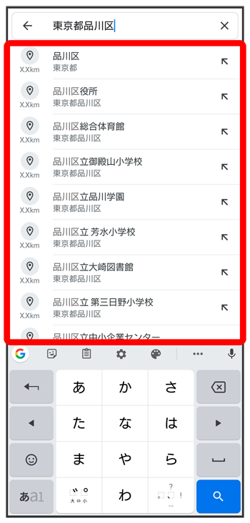 住所や都市、施設名などを入力選択候補から住所や都市、施設名などをタップ