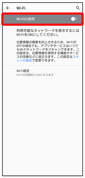 Wi-Fi設定画面が表示されます。