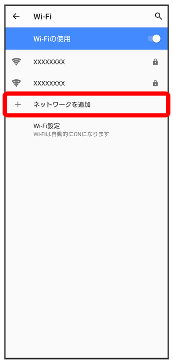 - Wi-Fiネットワークがスキャンされます。スキャンが終わると、画面に利用できるWi-Fiネットワークが表示されます。