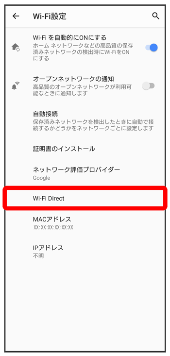 - 「ピアデバイス」欄に、近くにあるWi-Fi Direct機器が表示されます。