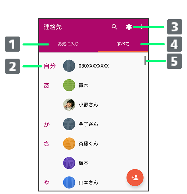 | 「すべて」タブ | すべての連絡先が表示されます。 |