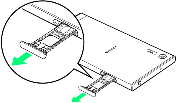ミゾに指先をかけて、SIMカード/SDカード挿入口のカバーを引き出す