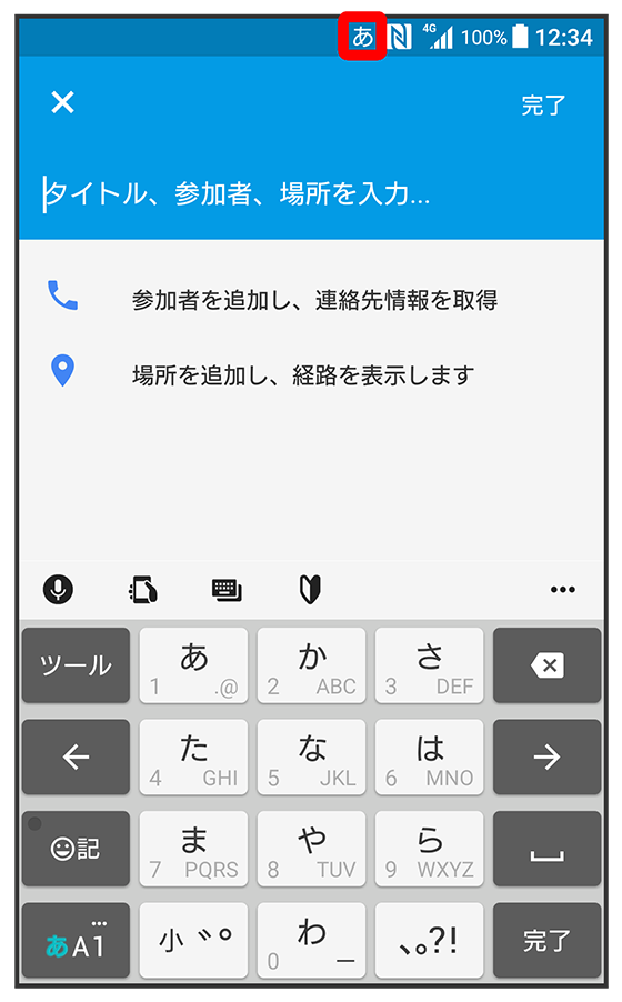 文字入力モードが「ひらがな漢字」になっていることを確認