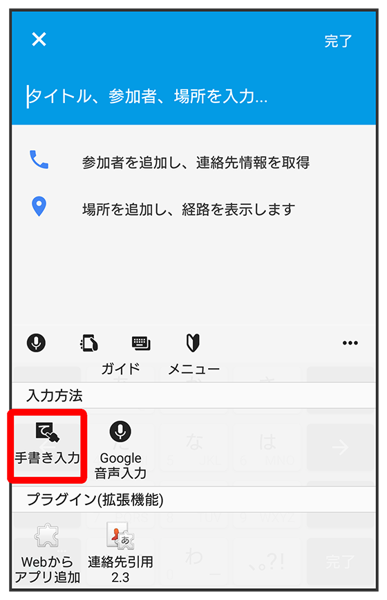 をタップすると、テンキーやPCキーボードに戻ります。- 濁点や半濁点は入力画面の中央より上側に入力します。