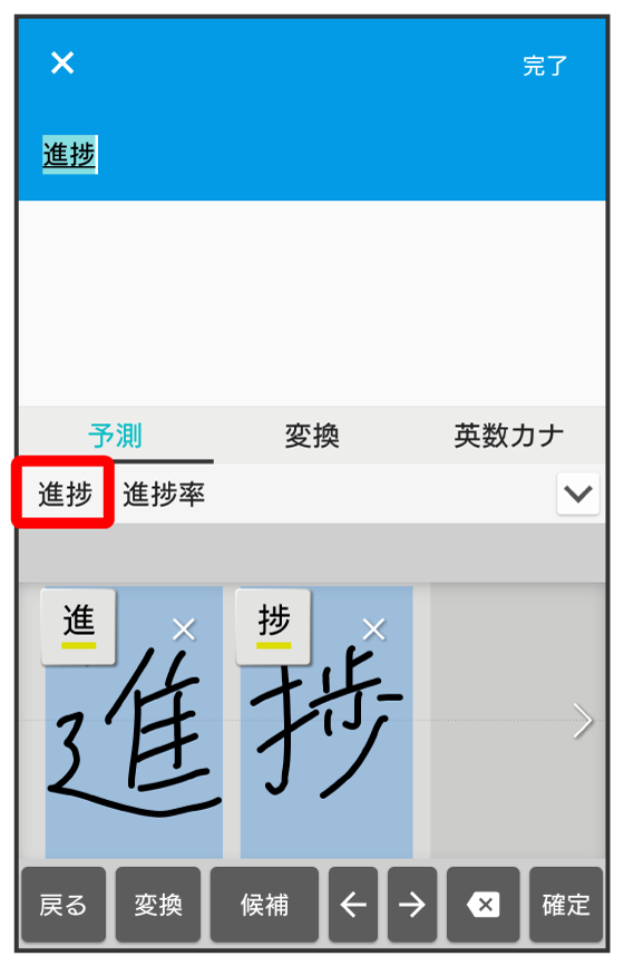 - 句読点や小文字は入力画面の中央より下側に入力します。