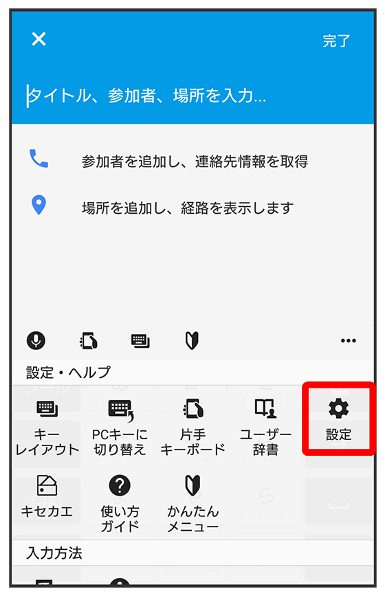 | キーボードと入力操作 | テンキーの入力方式やフリック感度などを設定できます。 |