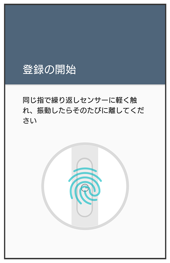 - 指紋全体が登録できるまで、くり返しセンサーに指を当てて離します。