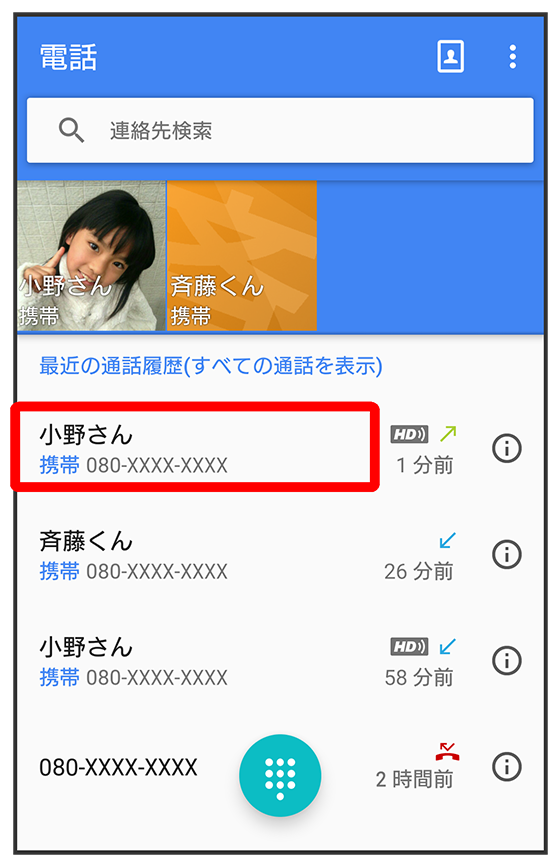 最近の通話履歴一覧で対象の通話履歴の![]()