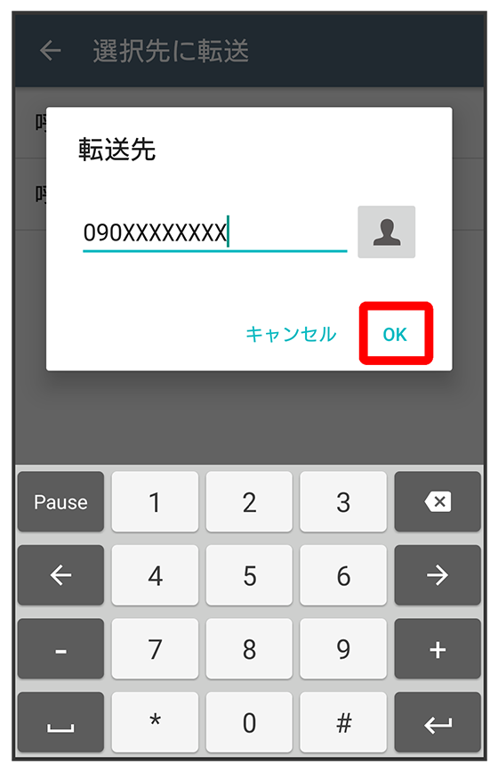 をタップすると、連絡先から転送先電話番号を選択できます。