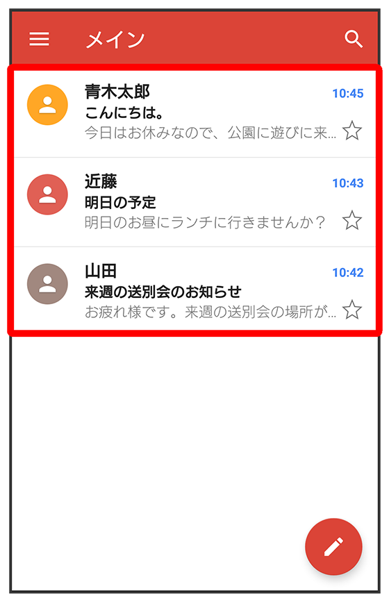 メール一覧画面が表示されます。