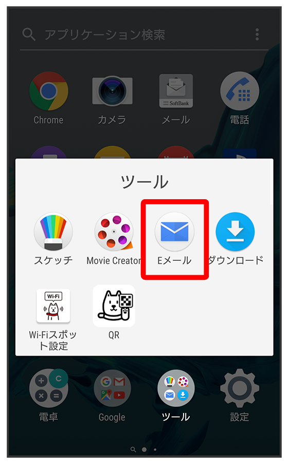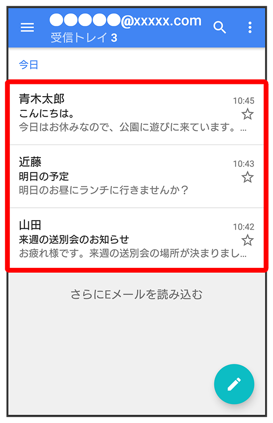 eメール一覧画面で未読にするメールをロングタッチメールを削除する