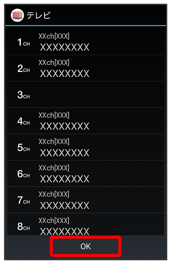チャンネルのスキャンが始まり、終了すると放送エリアが設定され、チャンネルリスト画面が表示されます。