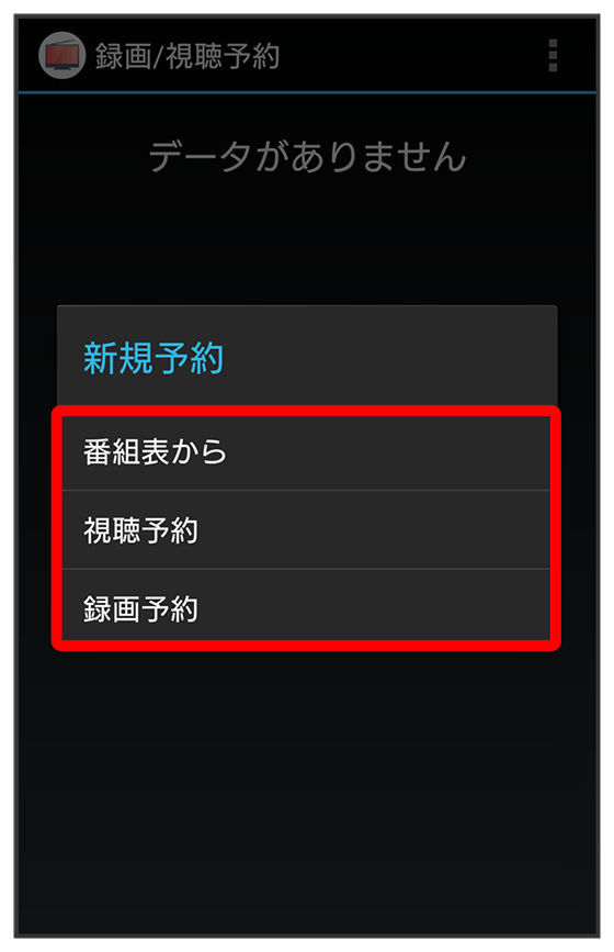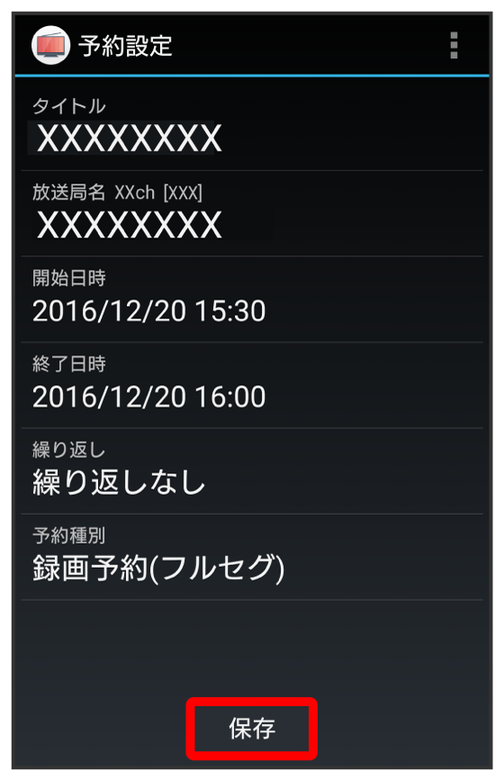 - 録画予約の場合は、「予約種別設定」で「録画予約(フルセグ)」「録画予約(ワンセグ)」を選択できます。