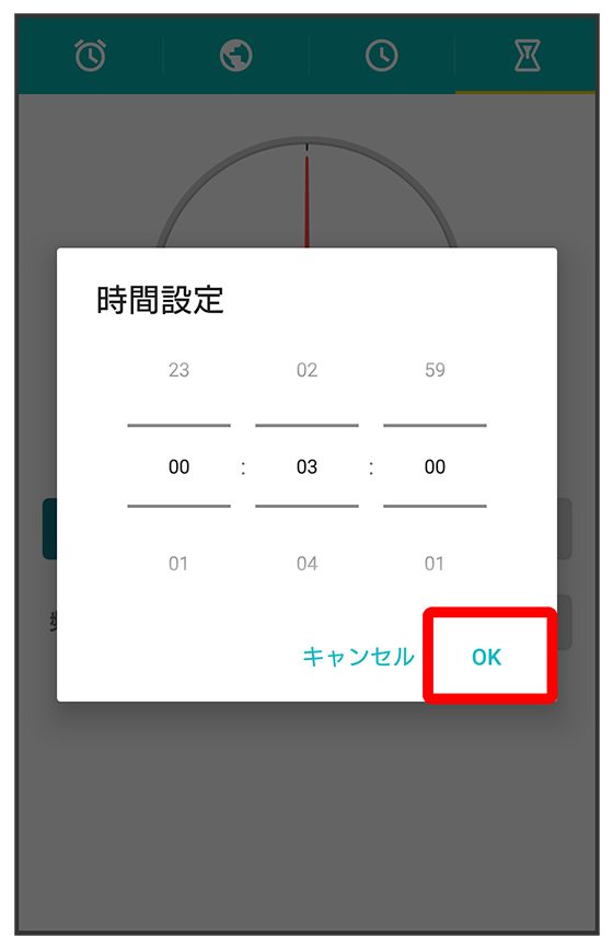 - 設定時間を経過すると、アラーム音でお知らせします。アラーム音を停止するときはをタップします。