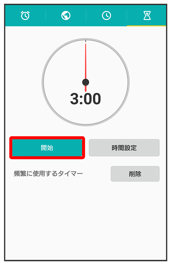 - 「頻繁に使用するタイマー」に設定時間の履歴が表示されている場合は、履歴をタップしても時間設定ができます。をタップすると履歴が削除されます。