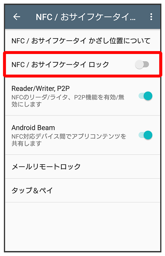 NFC/おサイフケータイ 設定画面で- 確認画面が表示された場合は、画面の指示に従って操作してください。
