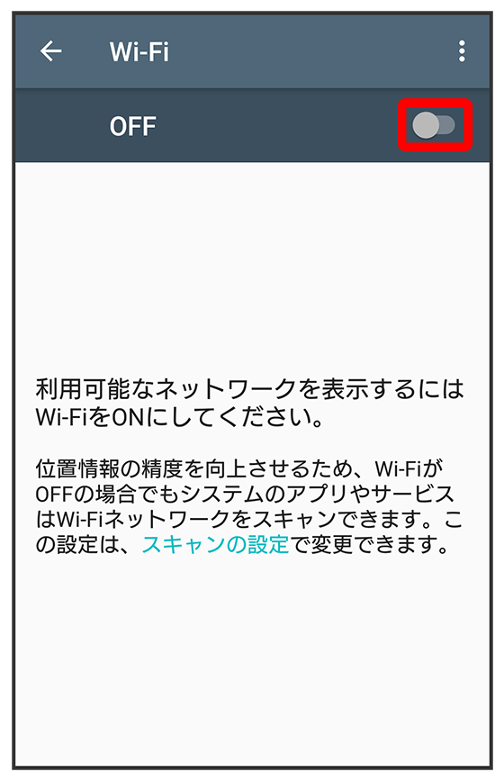 Wi-Fi設定画面でスキャンが終わると、画面に利用できるWi-Fiネットワークが表示されます。