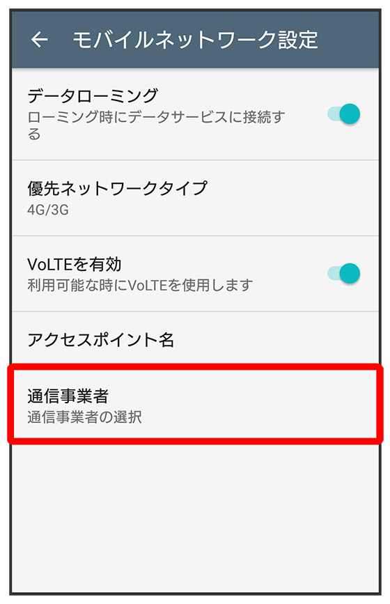 - 自動的に適切な通信事業者に接続する場合は、通信事業者画面でをタップします。