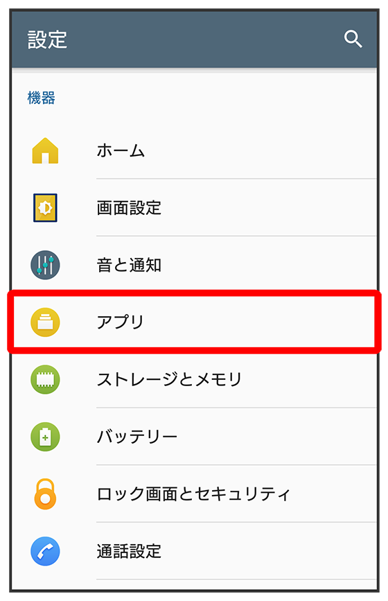 アプリ確認画面で管理するアプリケーションをタップ各項目を設定- /をタップすると、アプリケーションの無効化/削除ができます。