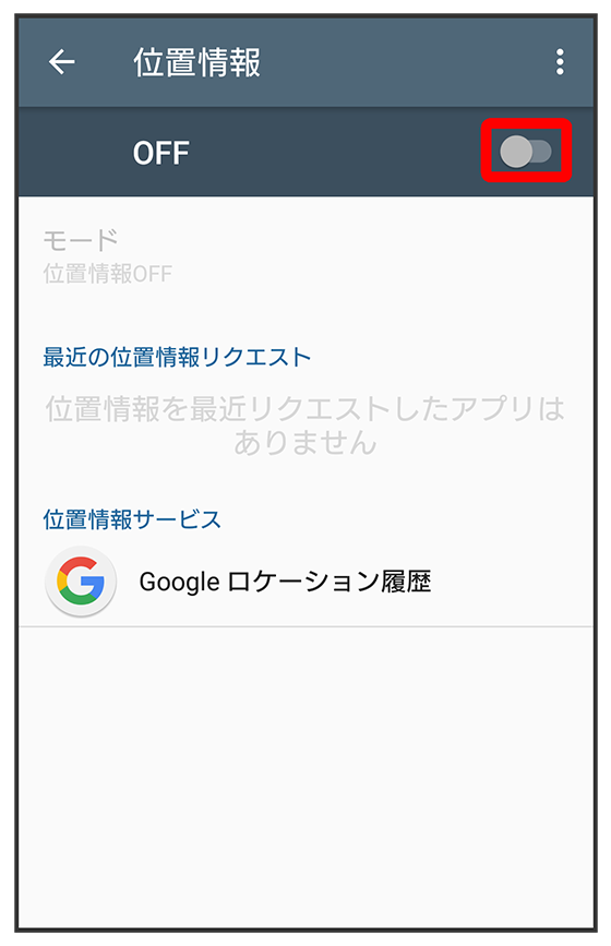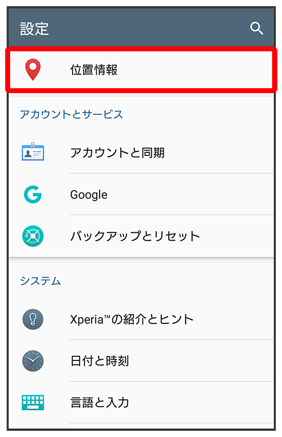 | 位置情報サービス | Google ロケーション履歴の設定や確認などができます。 |