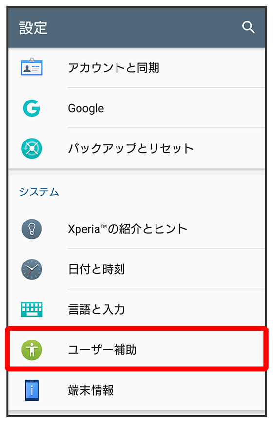 字幕、拡大操作など、本機を使用する上で便利なユーザー補助機能を設定できます。設定できる項目は次のとおりです。