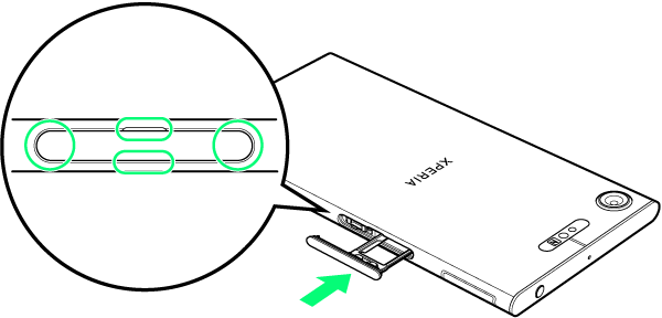 本体を水平にしてSDカードトレイをまっすぐに差し込み、SIMカード/SDカード挿入口のカバーの○部分をしっかりと押す