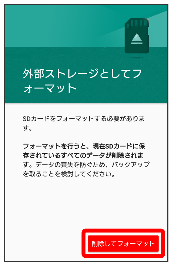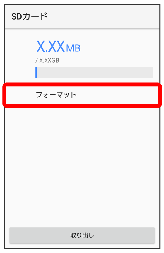 - フォーマットすると、SDカード内のデータがすべて消去されます。ほかの機器で使用したSDカードをフォーマットするときは、あらかじめよくご確認のうえ、操作してください。