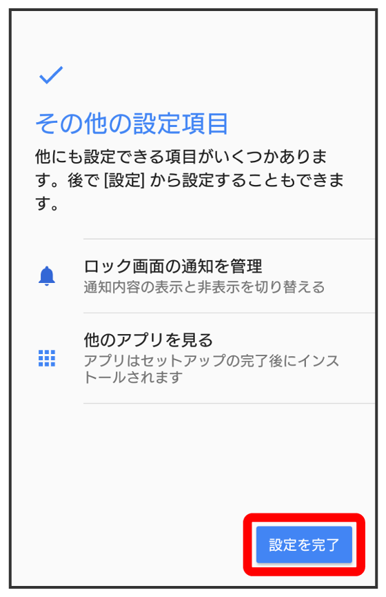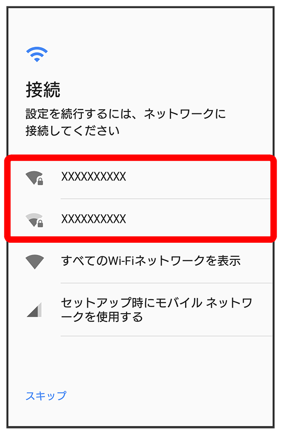- Wi-Fiの設定を省略するときは、/をタップします。以降は画面の指示に従って操作してください。