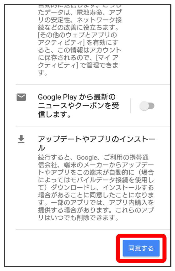 - をタップすると、Google アカウントを設定しているほかの端末からデータをコピーできます。画面の指示に従って操作してください。
