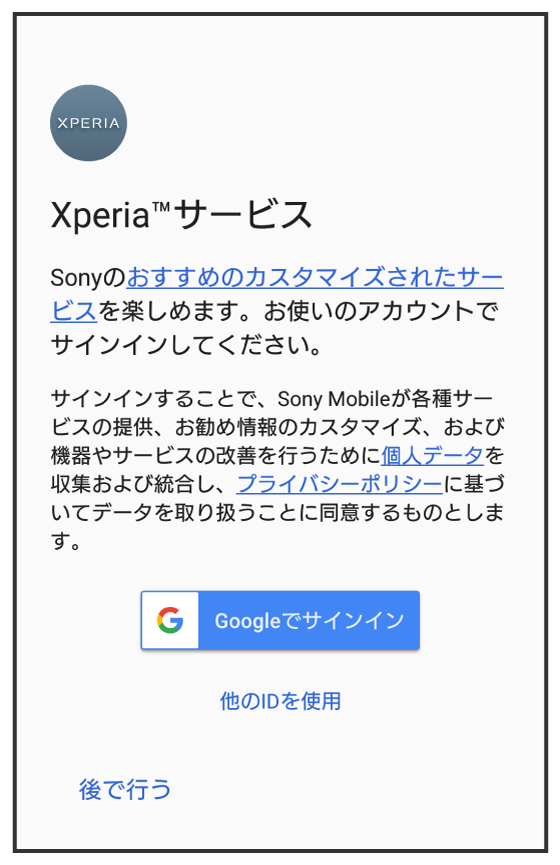 - Xperiaサービスを設定しないときは、をタップしてください。