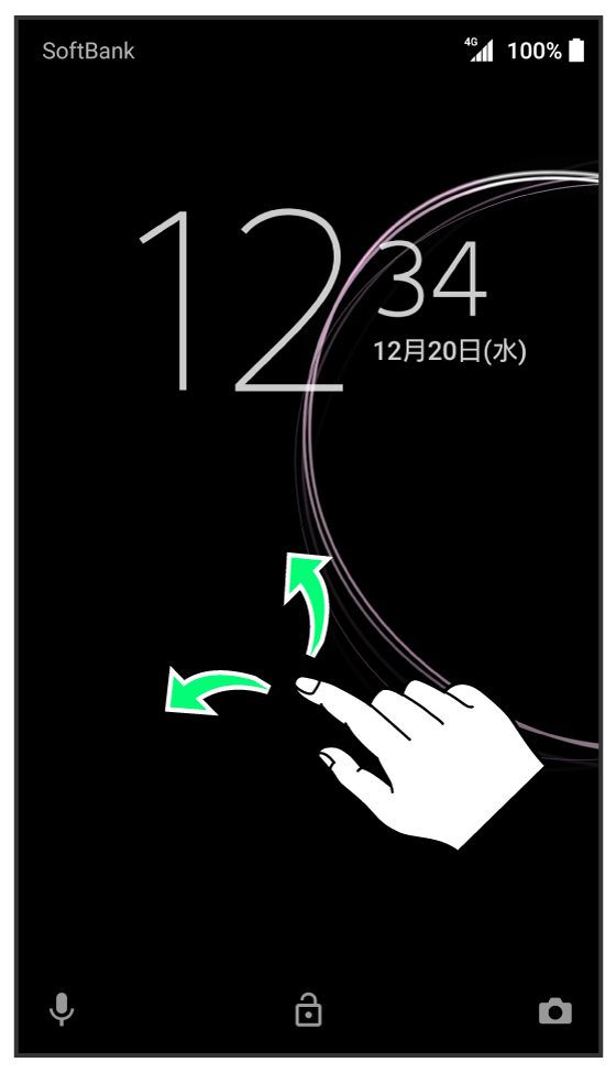 に触れる、または画面を上/左にフリック