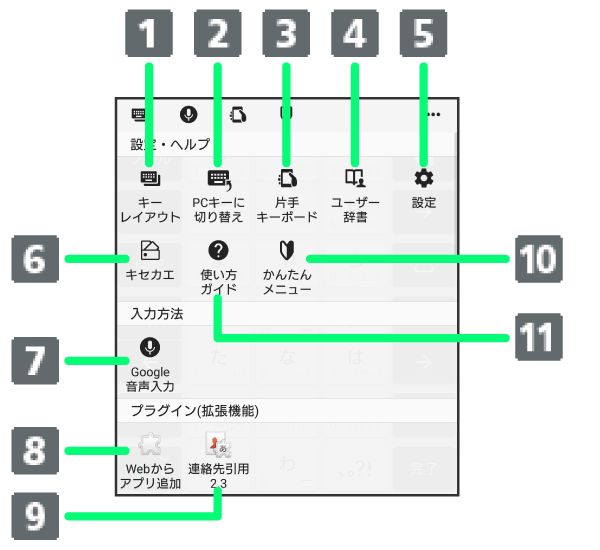 | Google音声入力 | Google音声入力に切り替えます。 |