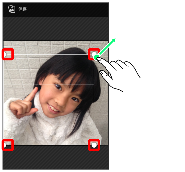 トリミング枠をドラッグして調節