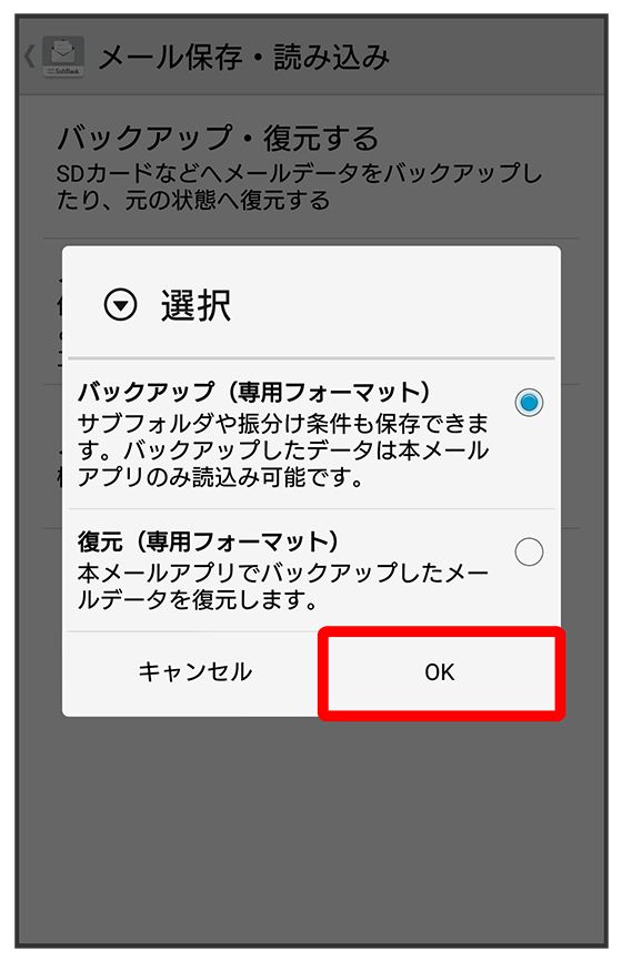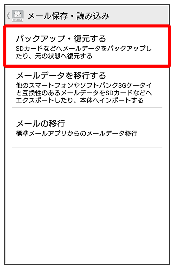 S!メール/SMSデータをバックアップする