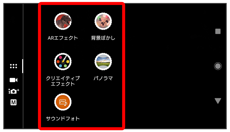 撮影画面をスワイプ(フリック)してカメラアプリ一覧を表示