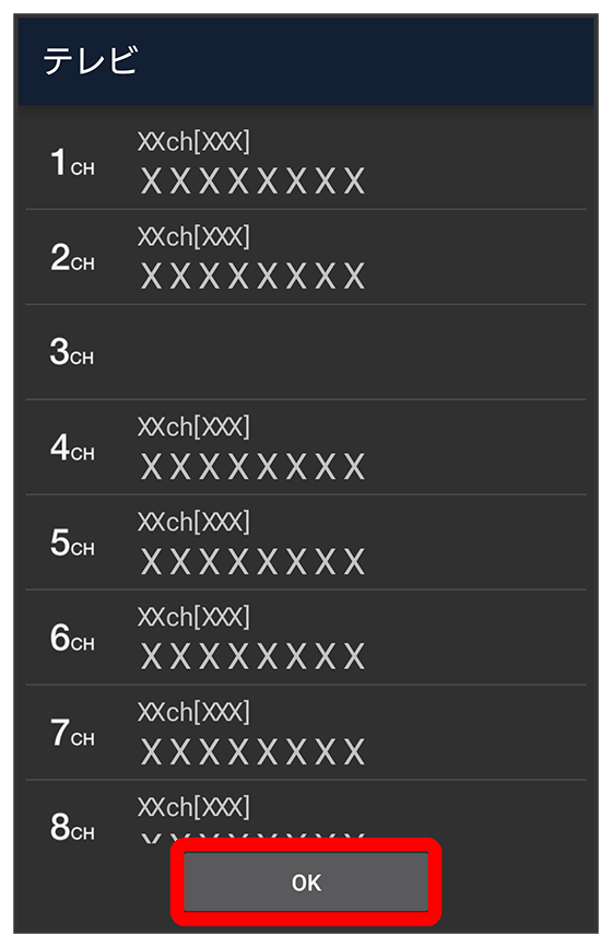 チャンネルのスキャンが始まり、終了すると放送エリアが設定され、チャンネルリスト画面が表示されます。
