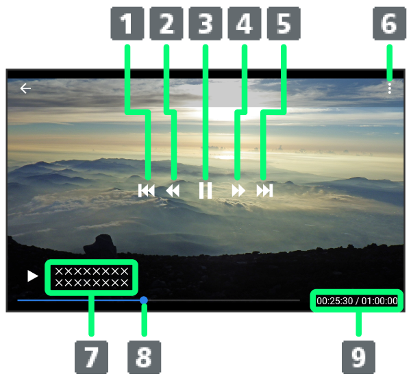 録画番組の再生中に映像をタップすると再生コントローラーが表示されます。