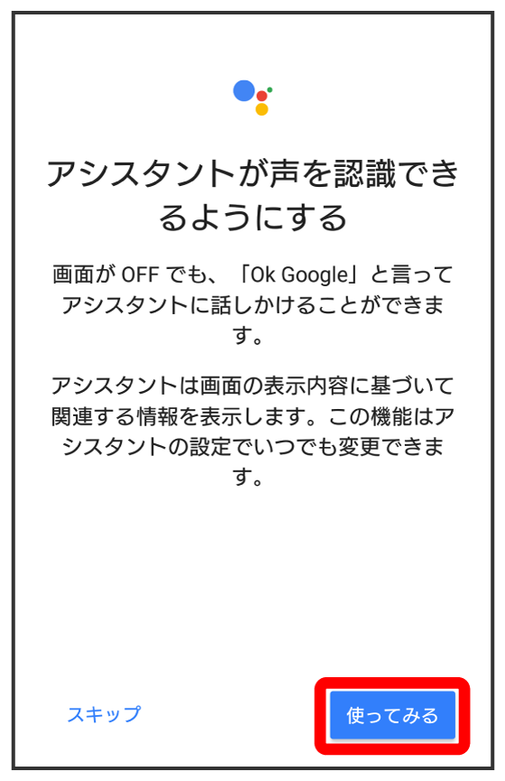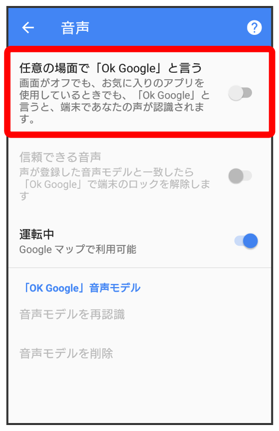 - すでに音声操作を設定したことがある場合は、音声アシスト機能がONに設定されます。