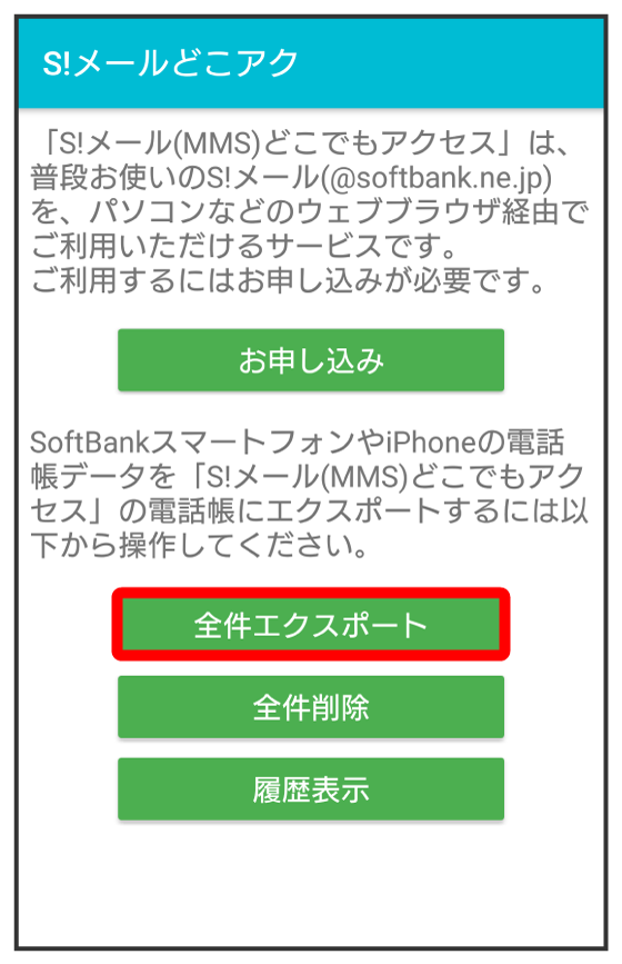 「S!メール(MMS)どこでもアクセス」へ電話帳をエクスポートする