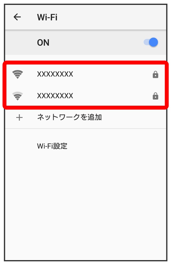 - Wi-Fiネットワークがスキャンされます。スキャンが終わると、画面に利用できるWi-Fiネットワークが表示されます。