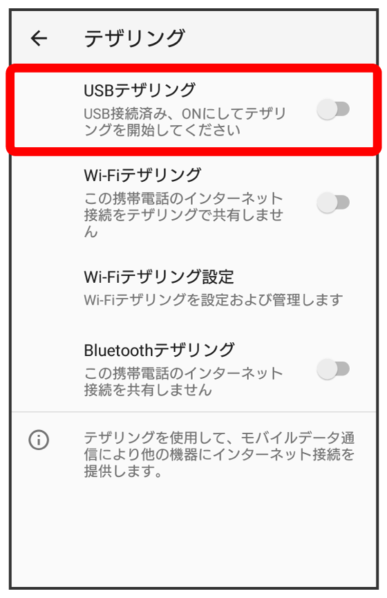- 本機上に「USB接続の用途」画面が表示されたら、をタップします。