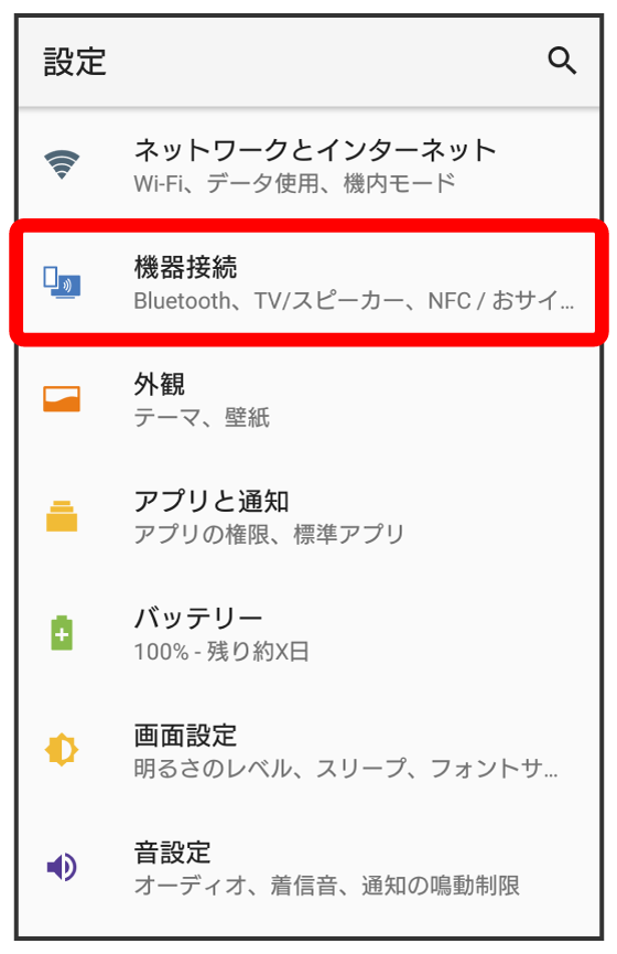 | Bluetooth | Bluetooth®接続の利用を設定できます。 詳しくは、「Bluetooth®機能を利用する」を参照してください。 |