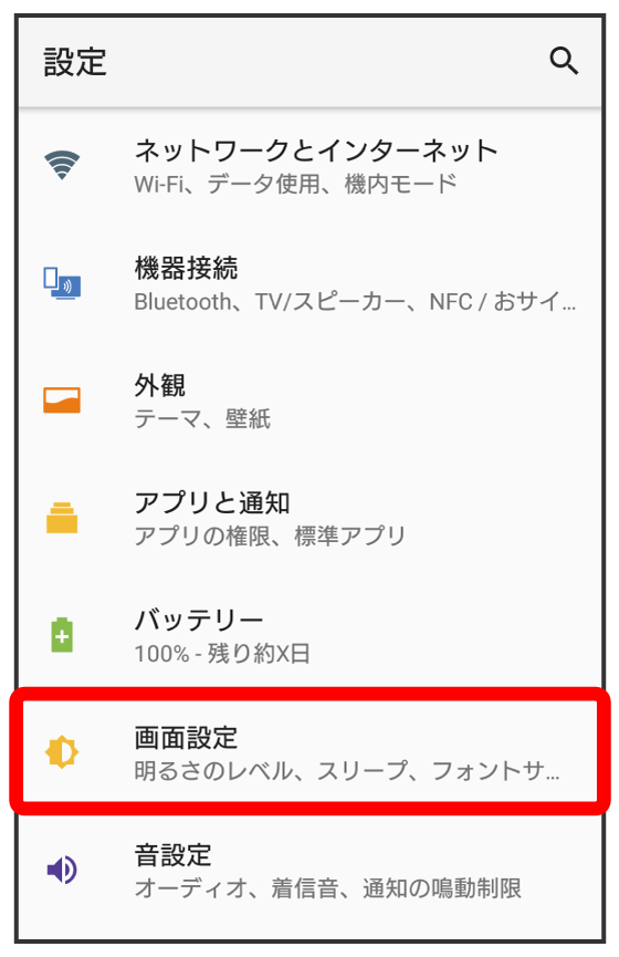 画面の明るさや文字サイズなどを設定できます。設定できる項目は次のとおりです。