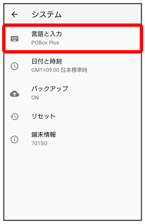 | 物理キーボード | 本機に接続されたキーボードに関する設定します。 |