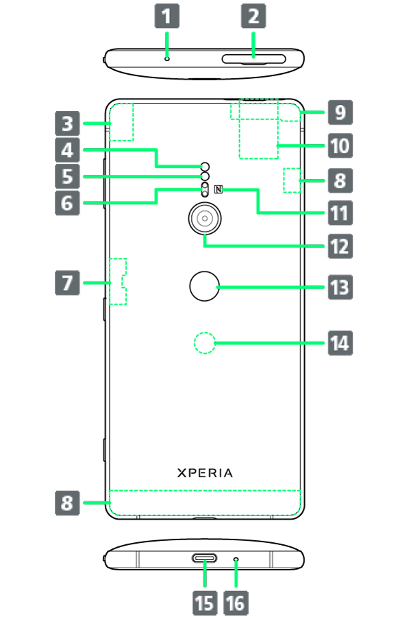 | 内蔵アンテナ部 | 通話やデータ通信を利用する際のアンテナが内蔵されています。 |