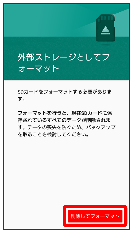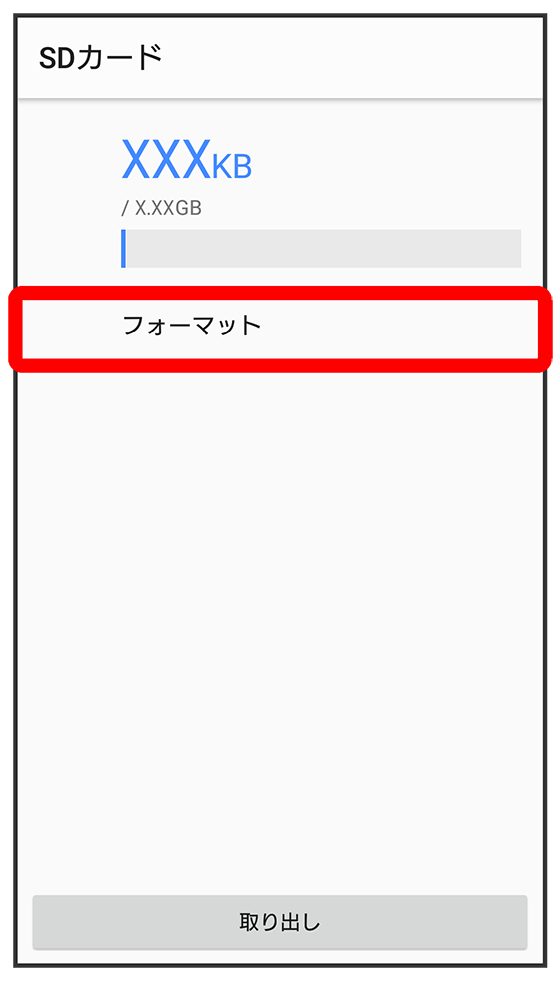 - フォーマットすると、SDカード内のデータがすべて消去されます。ほかの機器で使用したSDカードをフォーマットするときは、あらかじめよくご確認のうえ、操作してください。