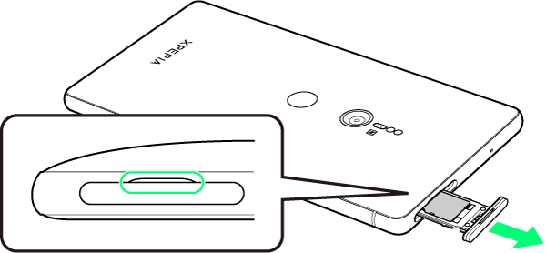 - ミゾに指先をかけて、SIMカード/SDカード挿入口のカバーをまっすぐに引き出してください。