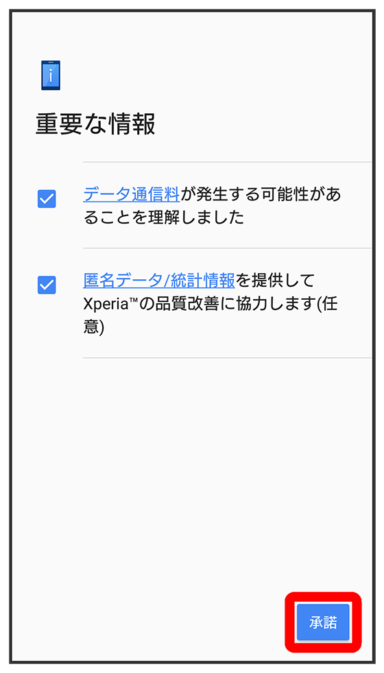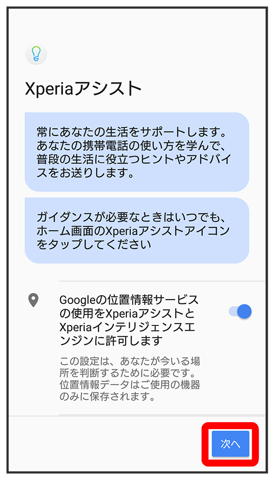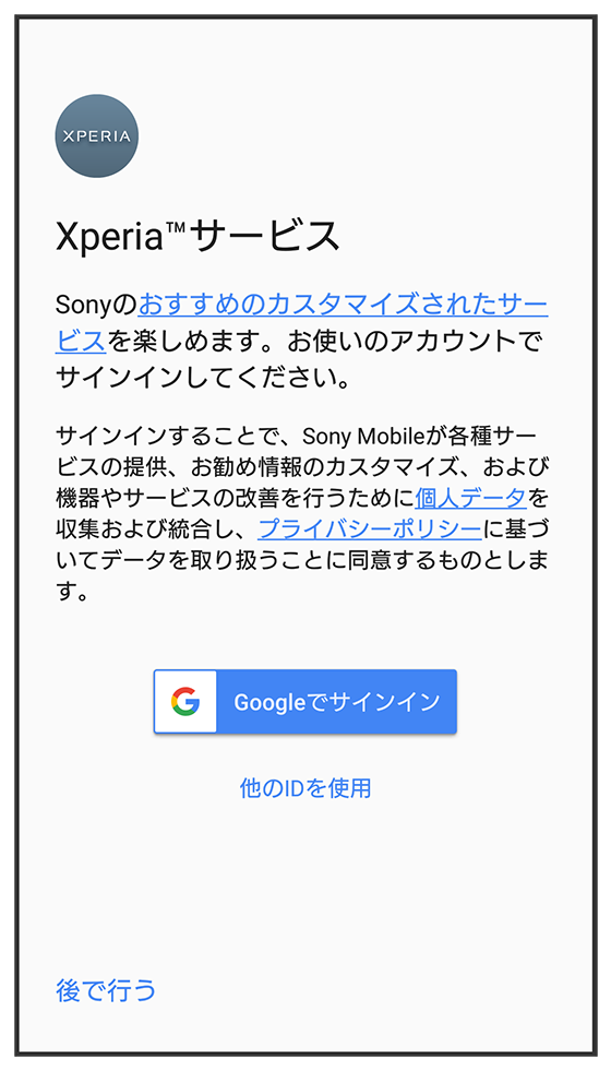 - Xperiaサービスを設定しないときは、をタップしてください。