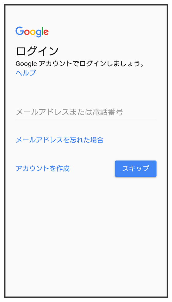 - Google アカウントを設定しないときは、をタップします。